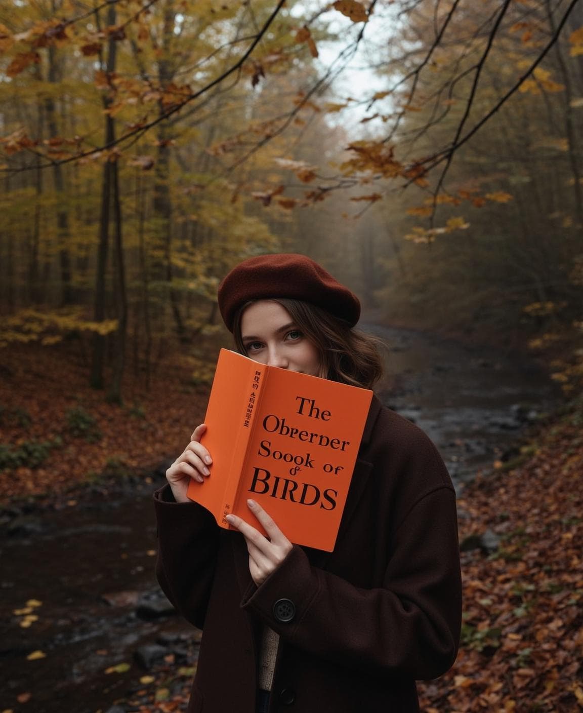 Inside you'll find prompts such as "Using the person in the uploaded reference image (Do not change facial features), recreate this scene: prompt: {"subject":{"description":"young woman","hair":"brown, wavy","skin":"fair"},"apparel":{"top":"cream colored sweater","bottom":"","other":"dark brown wool coat"},"accessories":{"eyewear":"","jewelry":[],"other":"brown beret","tattoos":[]},"pose_and_expression":{"pose":"holding an open book in front of her face","expression":"slight smile, looking at the camera"},"environment":{"location":"forest path next to a stream","surface":"fallen leaves","objects":["orange book with black text"]},"photography_style":{"lighting":"soft, overcast","aesthetic":"cinematic, autumnal"}} featuring a young woman." that cover the hero looks from the shoot. Model presets include nano-banana so you can keep renders on-genre. Aspect ratio guidance like portrait_4_3 keeps compositions print-ready. Use the prompt notes below to match wardrobe details, framing, and mood before you hit remix.