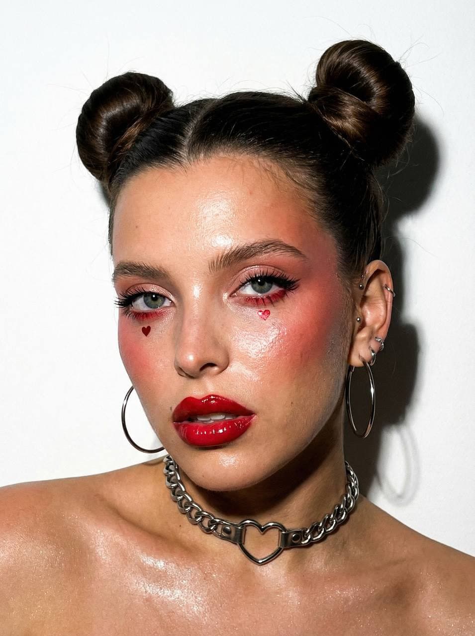 Iphone Flash Red Heart Makeup Portrait is a Remix.Camera AI photo pack featuring 1 reference images and 1 guided prompts tailored for fast remix sessions. Expect iphone photography, red heart makeup, and fashion editorial aesthetics throughout. Explore the edgy Valentine's Day makeup with Remix.Camera's AI-generated photo pack featuring ultra-realistic portraits. Bring your trained character into the workflow to mirror the poses and styling shown in the gallery.